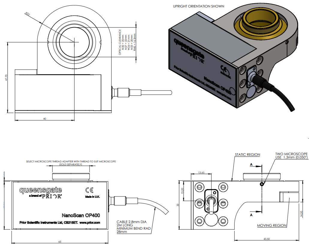 NanoScan OP400 壓電物鏡掃描 Z 軸提供快捷的步進時間以及整定時間,基于電容傳感器的位置反饋,也可以提供優(yōu)異的精度以及分辨率。OP400 與大多數(shù)顯微鏡以及物鏡兼容,特別的用戶配置設(shè)置針,對物鏡大小,重量,性能需求做出優(yōu)化,只需要針對應用選擇合適的設(shè)置即可使用。