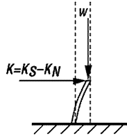 水平隔振器由兩個(gè)支桿組成,類似于兩個(gè)被負(fù)載軸向加力的底端固定頂端鉸接的梁柱,當(dāng)未加負(fù)載時(shí),梁柱具有水平剛度Ks,當(dāng)增加負(fù)載時(shí)候,側(cè)彎剛度由于梁柱效應(yīng)而減小。這相當(dāng)于一個(gè)水平方向的彈簧和負(fù)剛度系統(tǒng)的組合,總的剛度為K=Ks-Kn,Kn由梁柱效應(yīng)決定。通過(guò)對(duì)梁柱施加載荷使其接近臨界壓曲荷載,可以使水平剛度趨近于零,同樣可以構(gòu)成準(zhǔn)零剛度隔振器。